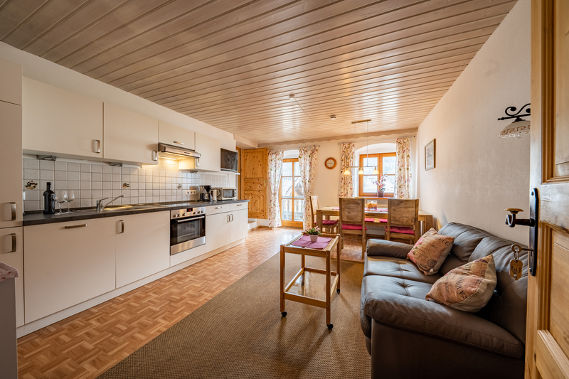 - Wohnküche (voll ausgestattet mit Cerankochfeld, Mikrowelle, Dunstabzug, Geschirrspüler, Backofen, Kühlschrank)