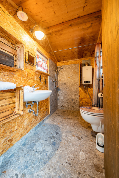 Eine Dusche sowie das WC ist in einem extra Waschhäuschen neben der Hütte - Warmwasser inklusive!
